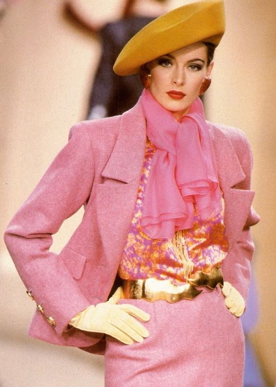 The 60’s changed again the attitude to pink head over heels, making it the color of youth, and playful sexuality. It stayed in fashion, but put next to bright green, blue, or orange in an outfit with extra mini skirt, it didn’t seem that exaggeratedly feminine anymore. In the next decade, it continued moving away from “girlish” connotations, turning it into a statement color of power, free sexuality and self-determination. The ’80s and the ’90s established the reputation of pink as the color of boldness and strong femininity, thought without much intellectual component, as in mass culture.