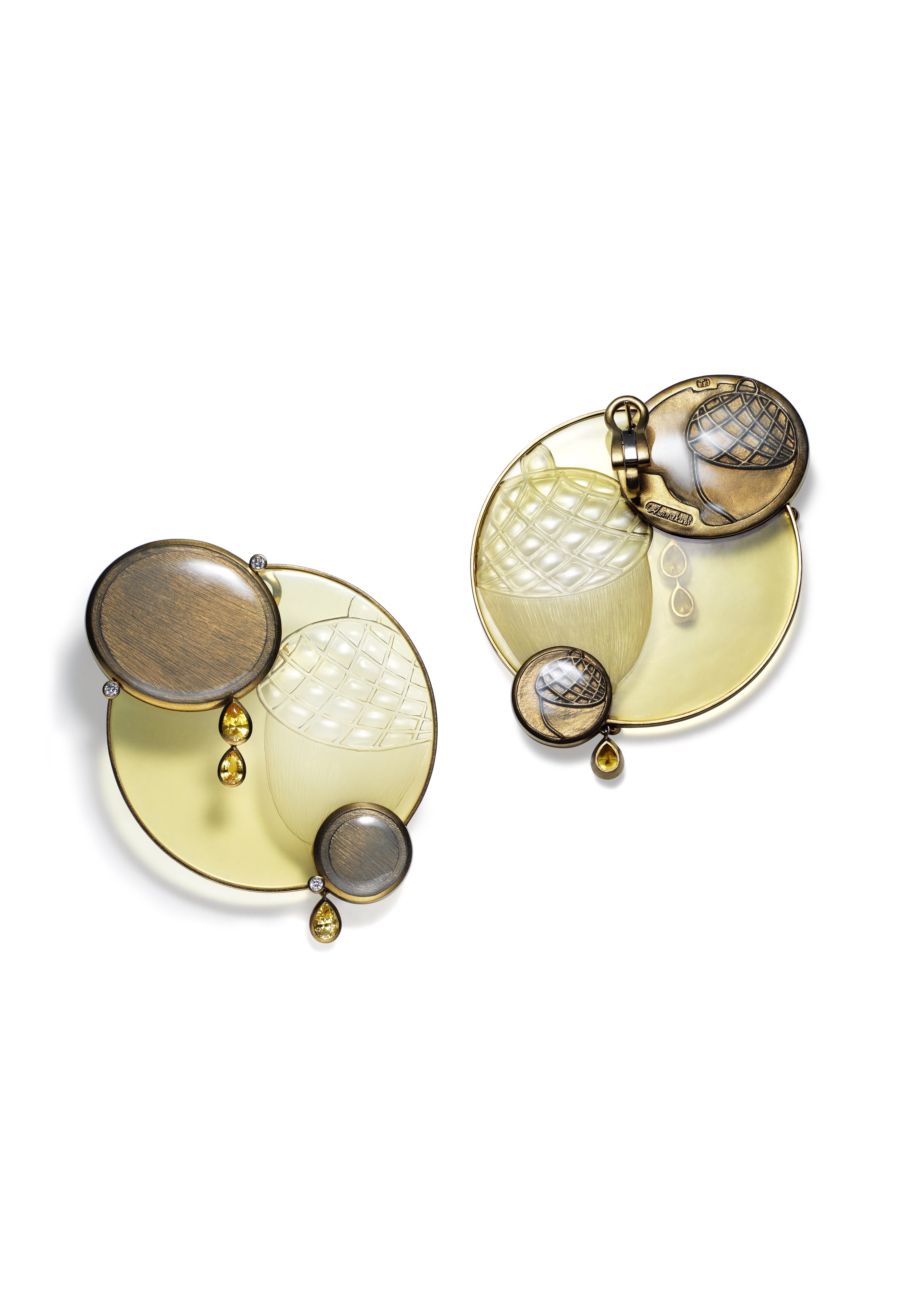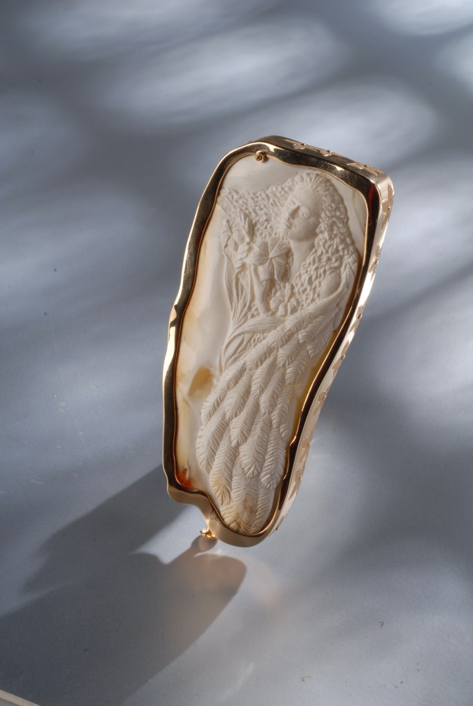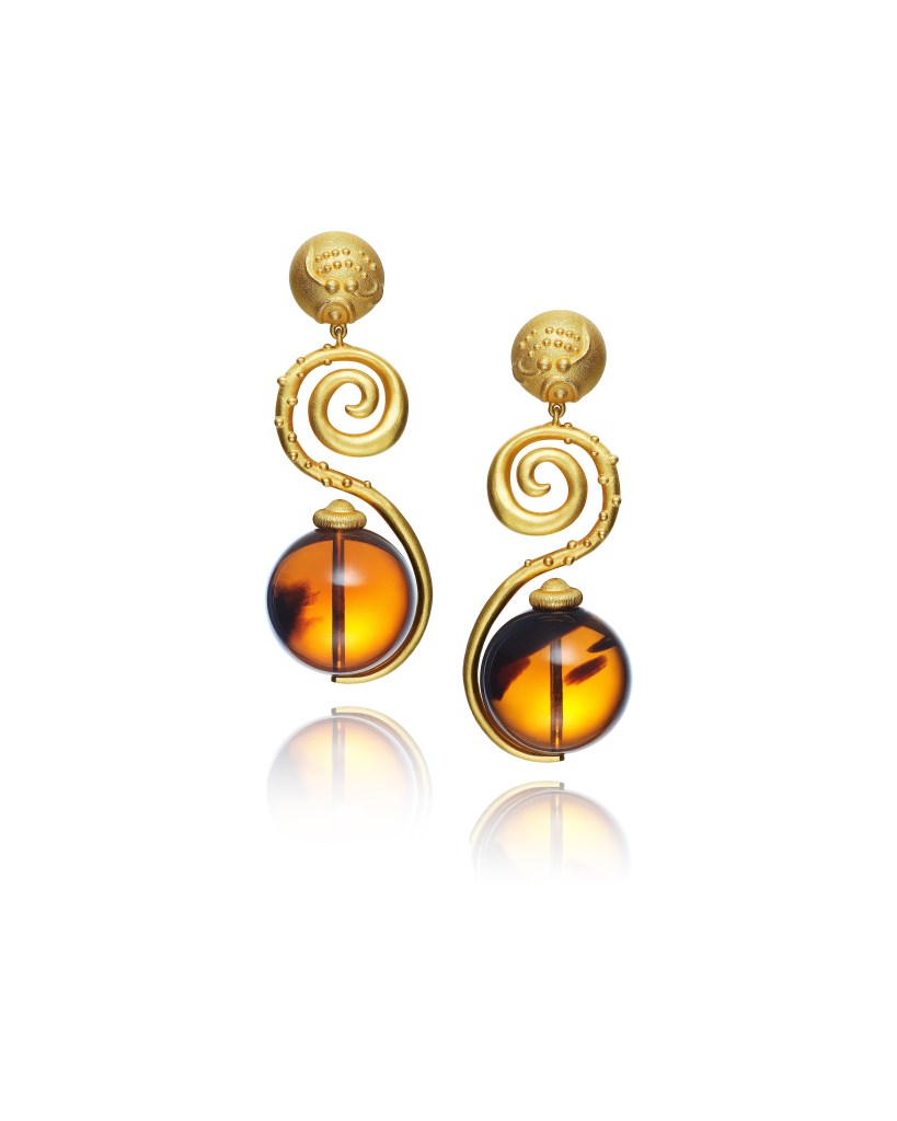 The softness and lightness of amber makes it a beautiful material to carve and it’s rich warm colour contrasts beautifully with the glow of 18ct yellow gold.”